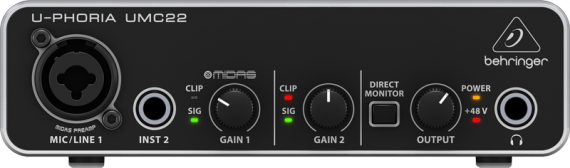 BEHRINGER UMC22 Интерфейс USB внешний,2 входа/2 выхода, микрофонные предусилители Midas